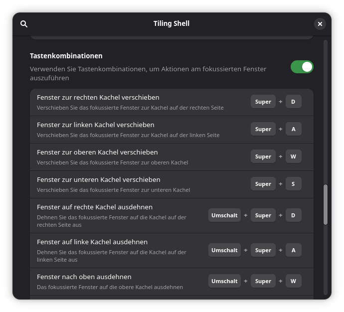 Awesome Tiles ist eine Tiling-Manager-Erweiterung für die GNOME-Shell, die das präzise Verschieben von Fenstern erleichtert. Dies wird durch anpassbare Tastenkombinationen ermöglicht, die standardmäßig den Tasten des Nummernblocks zugewiesen sind.