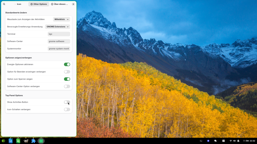 Dieser Teil lässt sich auf alle Systeme, welche GNOME-Shell nutzen anwenden.
