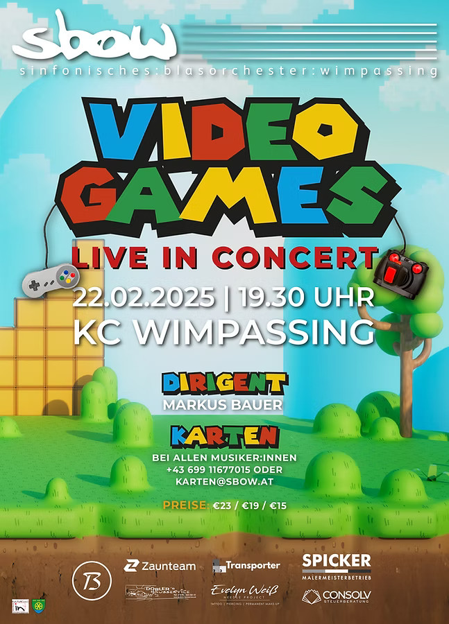 Erinnern Sie sich an den groovigen Ohrwurm von Super Mario oder die mitreißenden Töne von Tetris? An die Zeiten, in denen Ihr Game Boy oder Ihre PlayStation treue Begleiter waren? Jetzt können Sie diese unvergesslichen Melodien wieder erleben – live im KC Wimpassing.
